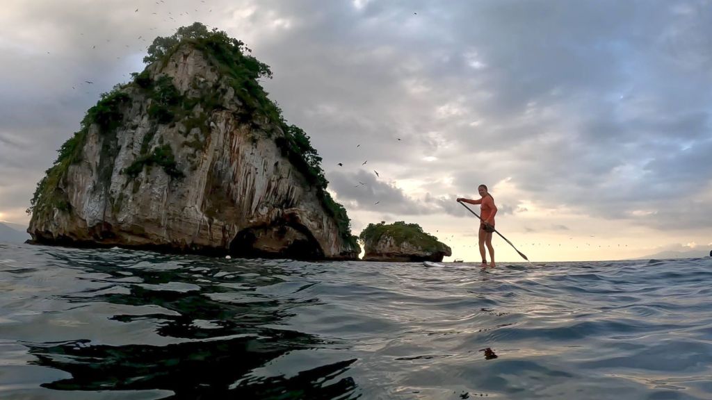La importancia ecológica de Los Arcos radica en su papel como santuario para una amplia variedad de especies. Bajo el agua, los arrecifes y cuevas submarinas albergan un ecosistema vibrante. Nadar entre sus formaciones significa encontrarte con bancos de peces cirujano, cuyos tonos amarillos brillan bajo el sol, o el pez sargento, rayado en negro y amarillo, que patrulla los corales. Las tortugas marinas, especialmente la tortuga golfina, son visitantes frecuentes, mientras que las rayas águila y las mantas gigantes añaden un toque de grandeza al paisaje submarino. Los buzos experimentados pueden explorar túneles donde morenas y langostas se esconden, y en temporada de migración (diciembre a marzo), el eco de las ballenas jorobadas resuena en la distancia, un recordatorio de la conexión de este lugar con rutas migratorias globales.